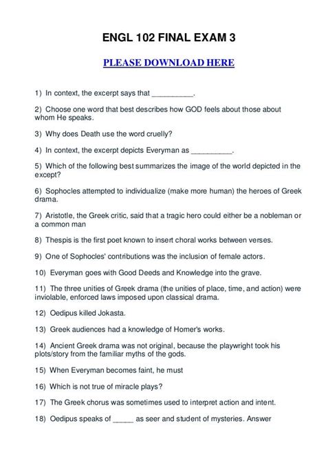 Read Online engl 102 final exam 3 answers Hardcover